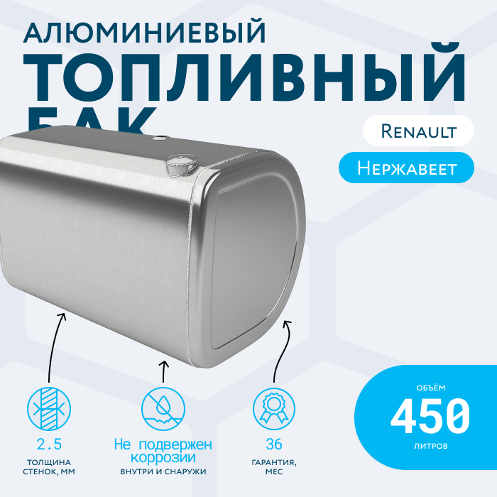 Наши алюминиевые баки изготовлены из алюминия АМг3 увеличенной толщины 2.5 мм. Однако мы можем изготовить топливный бак для вашего грузового авто из алюминия 3 мм под заказ. Обратите внимание! Заказная позиция требует увеличения стоимости и срока производства бака.
